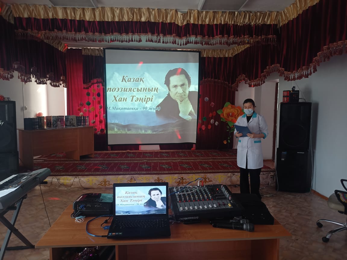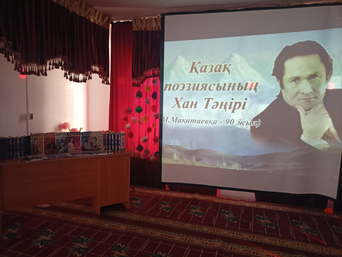 11.02.2022.ж ақын Мұқағали Мақатаевтың ақпан айындағы туған күніне орай кітапханашы Мұратбекова Гүлнұрдың ұйымдастыруындағы рухани кеш өткізілді. Кеште ақынның өмірбаяны, отбасы мен өткен тарихынан сыр шертетін естеліктер көрсетілді. Ақынның сөздеріне жазылған әндер шырқалып, ол туралы кітаптар көрмесі таныстырылды.